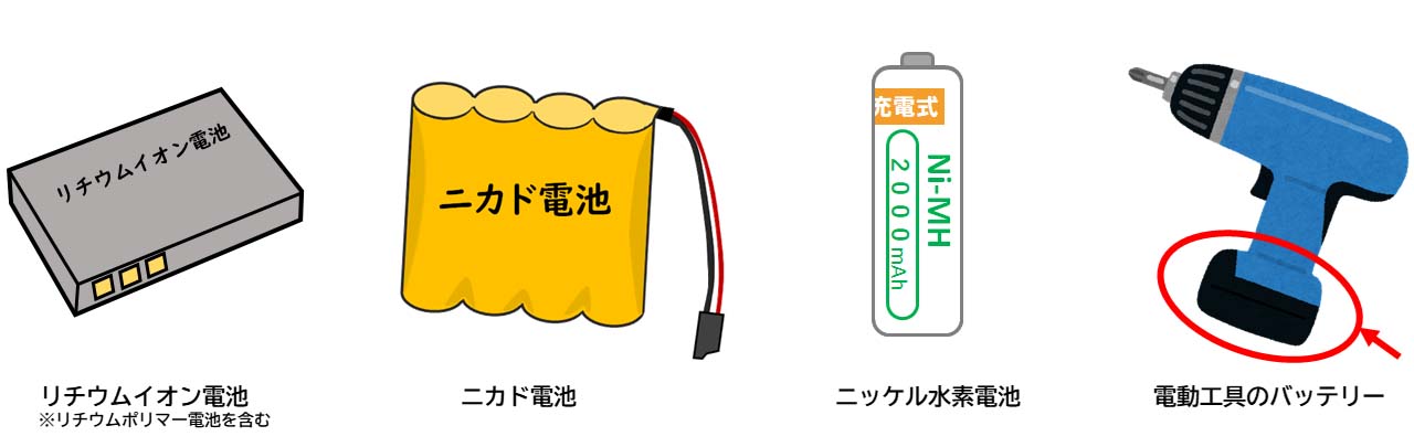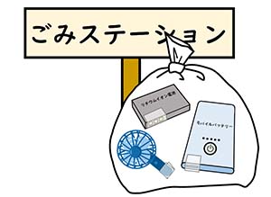 家庭ごみに混入したリチウムイオン電池などが原因で、ごみ収集車や処理施設での火災事故が全国で多発しています。事故を未然に防止するため、令和8年4月からリチウムイオン電池やモバイルバッテリーなどの小型充電式電池のごみステーション収集を開始します。適切な分別排出へのご協力をお願いします。